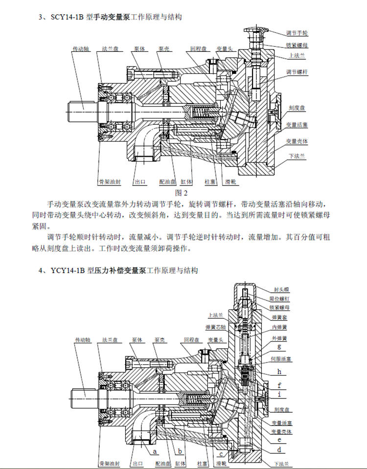 10YCY14-1B柱塞泵是YCY系列壓力補償變量柱塞泵的一個常用型號規格,該泵在結構上采用直軸斜盤式軸向柱塞泵的通用結構。